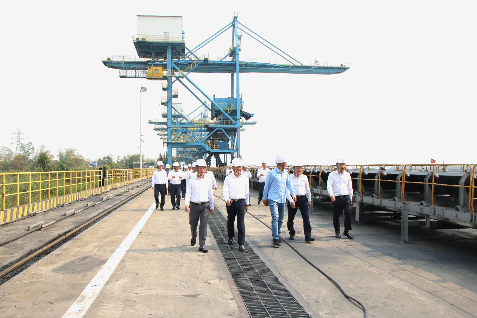 Phó Tổng giám đốc TKV Nguyễn Huy Nam cùng đoàn công tác kiểm tra công tác giao nhận than tại kho, cảng của Nhà máy Nhiệt điện BOT Hải Dương